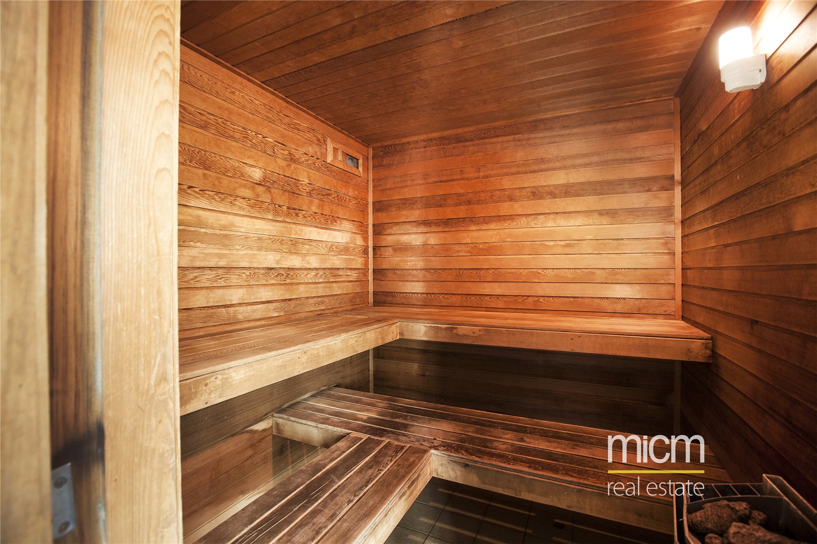 Features: Residents enjoy use of complex gymnasium, sauna and pool.