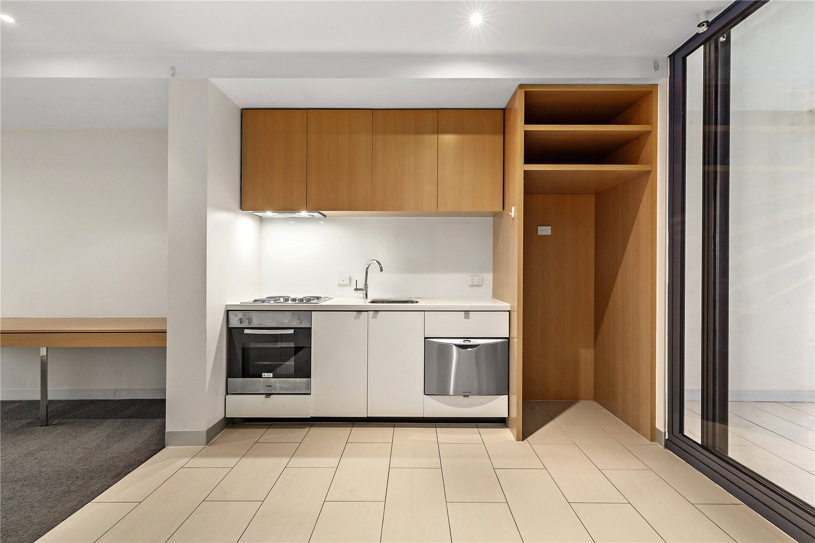 Located on the 8th floor, the apartment enjoys a functional, flow-through layout designed for easy living. The generous open-plan living and dining area connects seamlessly to a stone-topped kitchen featuring stainless-steel appliances, including a Fisher & Paykel dishwasher, offering both practicality and style.