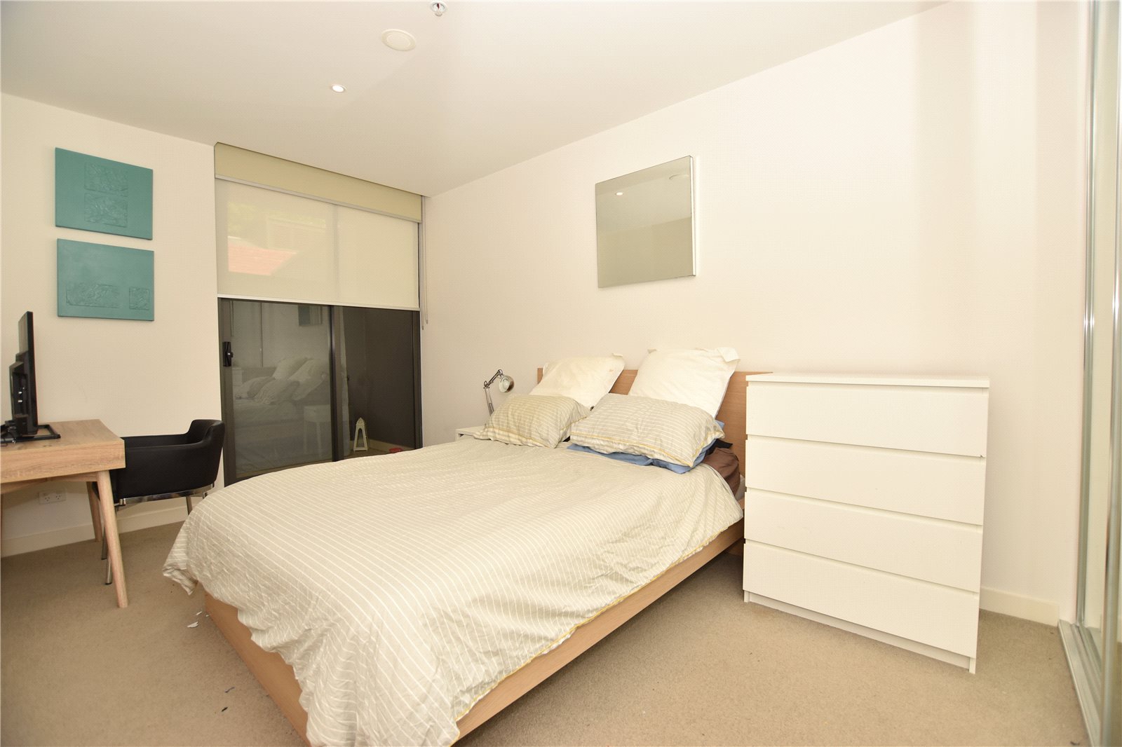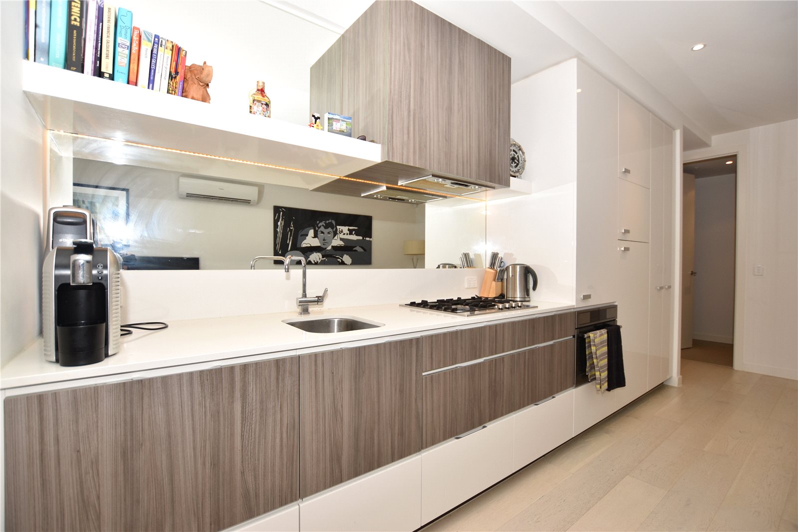 - Modern open plan living and dining area with floor to ceiling windows offering plenty of natural light, neutral colours scheme and downlights. - Private terrace off living area with additional street access via private gate to apartment. - Slimline kitchen with added shelving, mirror splashback and lighting to create a modern feel stainless steel appliances including dishwasher and integrated fridge, sleek timber finish cabinetry and functional storage. - Large bedroom with natural light and mirrored built in robes. - Central sparkling bathroom with walk in shower - Separate European laundry and washing machine - Spacious Master Bedroom with additional private balcony, mirrored built in robes and private ensuite