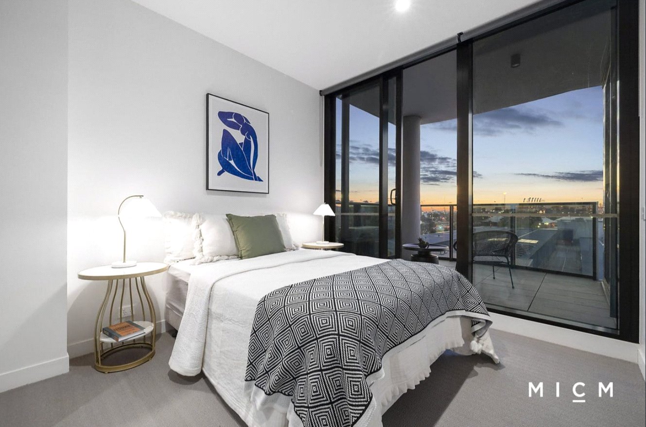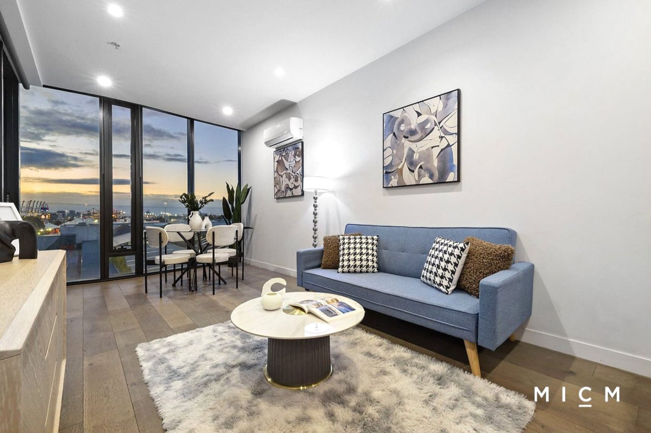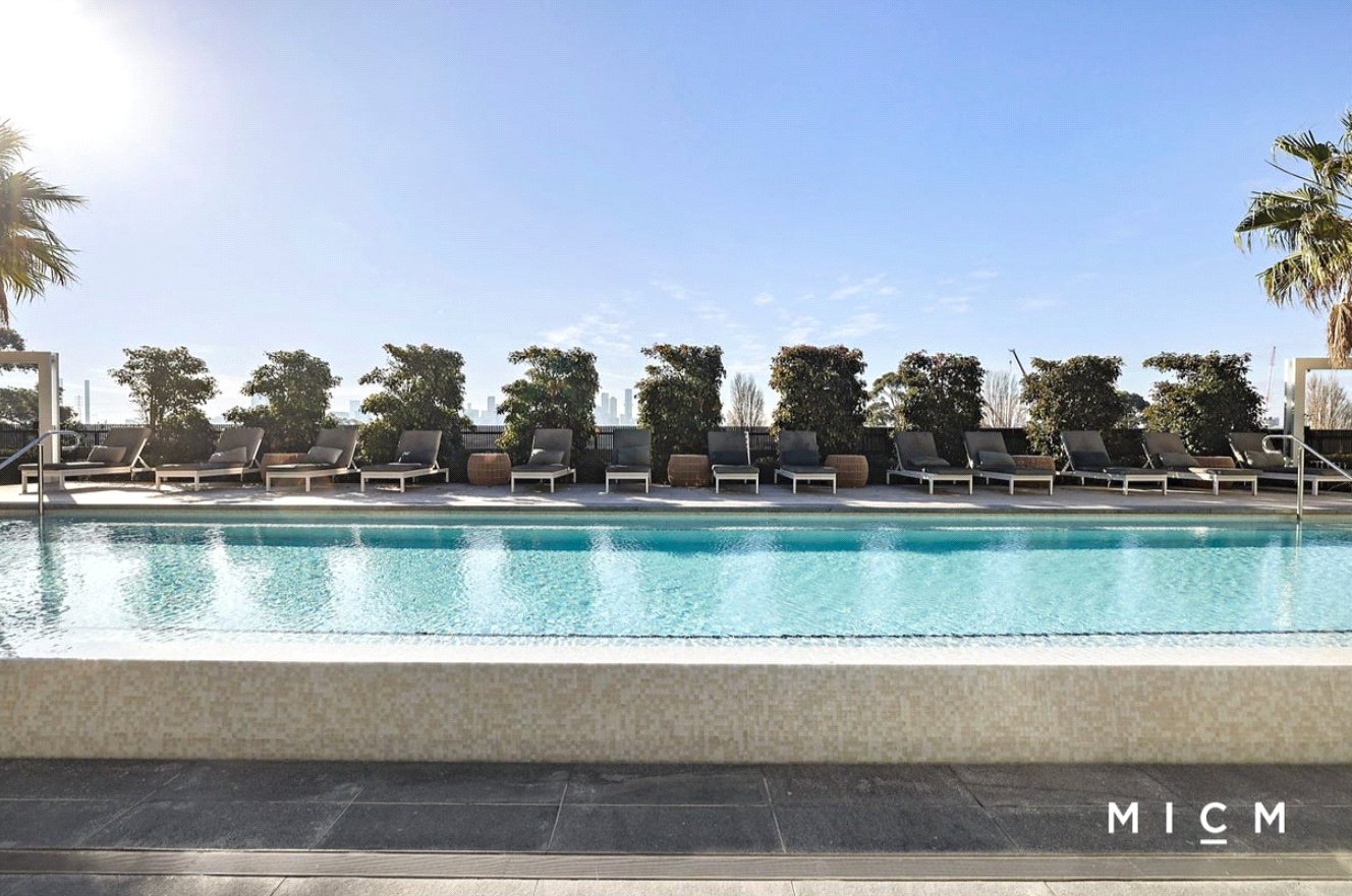 Live the resort lifestyle in this stylish 2-bedroom, 2-bathroom corner apartment located in the sought-after Port Melbourne development. Designed for comfort and luxury, this light-filled home offers open-plan living with floor-to-ceiling windows, a large sheltered balcony, and spectacular views across the city skyline. The gourmet kitchen features stone benchtops, mirrored splashback, premium Bosch appliances (including an integrated dishwasher) and a breakfast barideal for entertaining or relaxing at home.