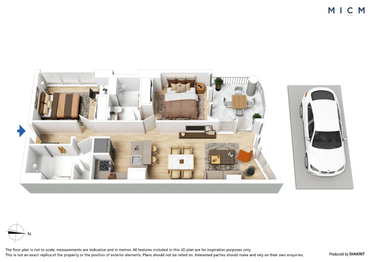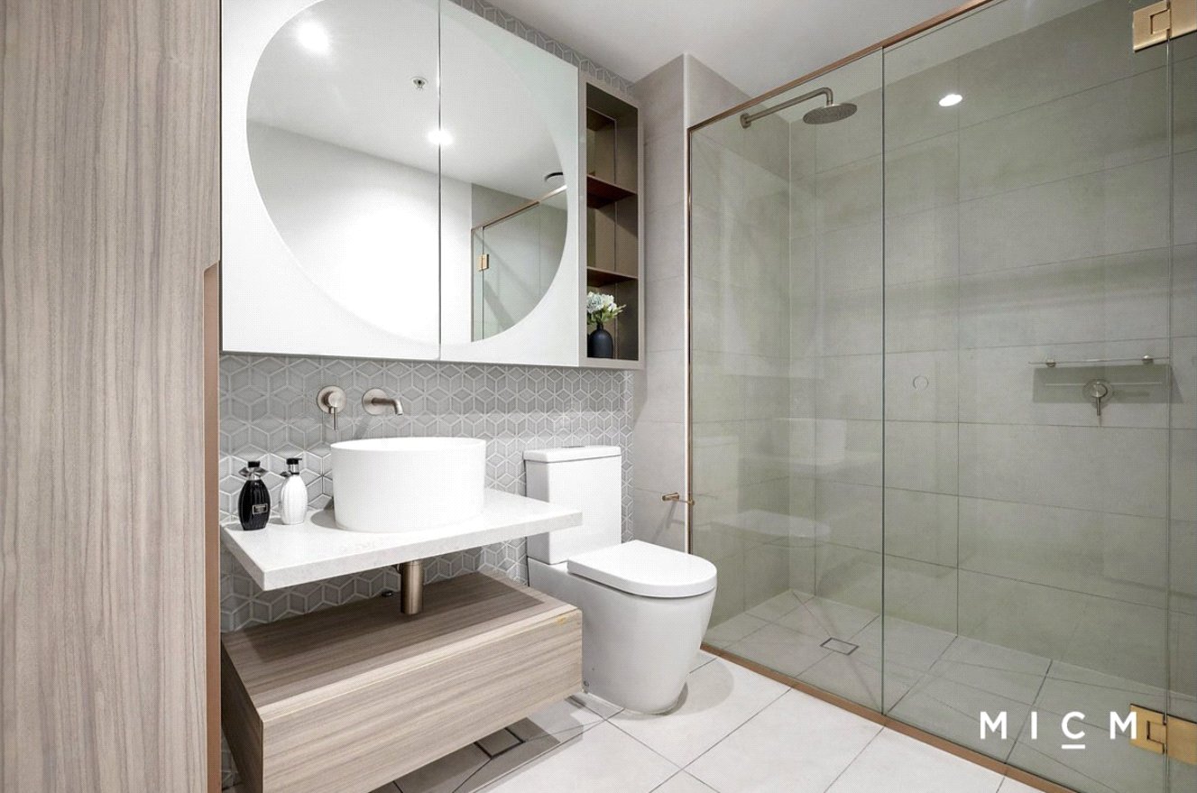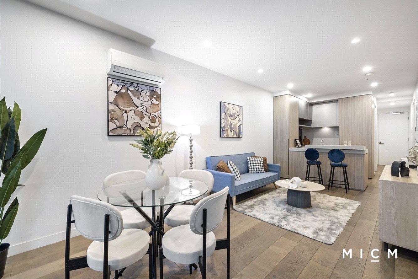 Both bedrooms are generously sized with mirrored robes. The master has direct balcony access, while the second bedroom offers a leafy outlook and a handy study nook with a built-in desk. Two sleek bathrooms boast rainfall showers, stone-topped vanities, and full-height tiling. Additional features include: • Car space • Euro laundry • Split-system heating and cooling • Timber flooring and roller blinds • Intercom Entry Enjoy access to an infinity pool, private cabanas, spa, a gym, yoga/Pilates studio, rooftop BBQ terrace, and residents lounge with kitchen and dining areas.