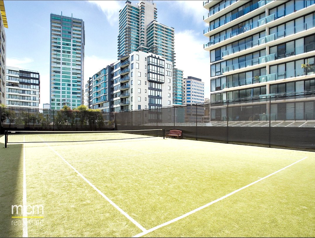 Features: One secure car space included. The landscaped garden courtyard has an indoor pool, tennis court, gym and BBQ area.