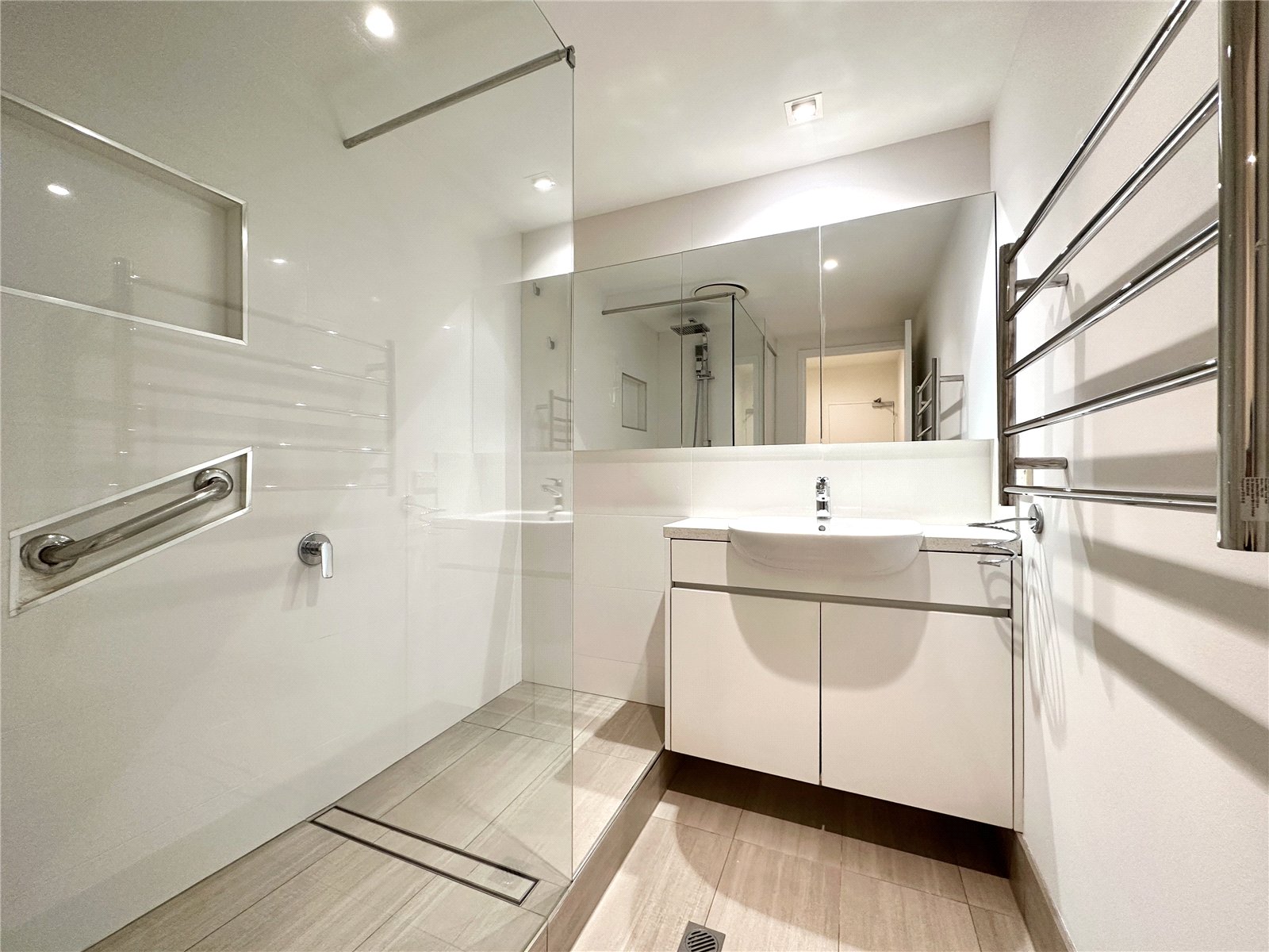 Spacious open-plan living and dining pivots a stone-finished kitchen graced with a breakfast bar, an updated Asko dishwasher, and high-end Smeg appliances including a 4-burner gas cooktop. Elevated with distinction on the third floor of the north wing inside the prestigious Riverside Apartments complex, a sheltered balcony captures the all-day warmth of northern light. Entertain friends and family with the stunning city skyline rising from behind leafy treetops. The generously sized and robed bedrooms are serviced by a fully tiled bathroom boasting mirrored cabinetry, stone detailing, and both rainfall/hand-held shower fittings. The main bedroom highlights its own north-facing balcony, while a flexible study offers a drop-down bed, ideal for use as a guest bedroom.