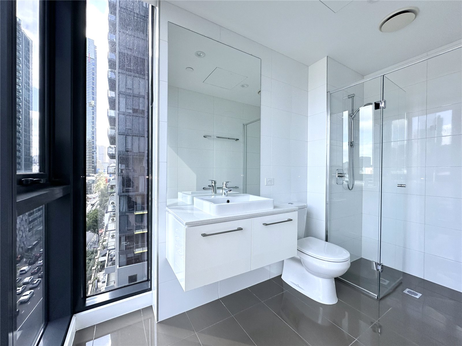- Floor-to-ceiling windows, air-conditioning & private balcony - Double-glazed windows for noise reduction and climate insulation - Modern kitchen with microwave, dishwasher drawer, 4-burner gas cooktop, and stainless steel Miele appliances - Master bedroom with private bright fully-tiled ensuite & mirrored built-in robes - Second bedroom with mirrored built-in robes - Central elegant fully-tiled bathroom - Separate Euro-laundry including a washing machine and separate dryer - One secure car space included - Average 6.5 star energy rating - NBN broadband internet & pay-tv ready (fees may apply) - Secure high speed elevators