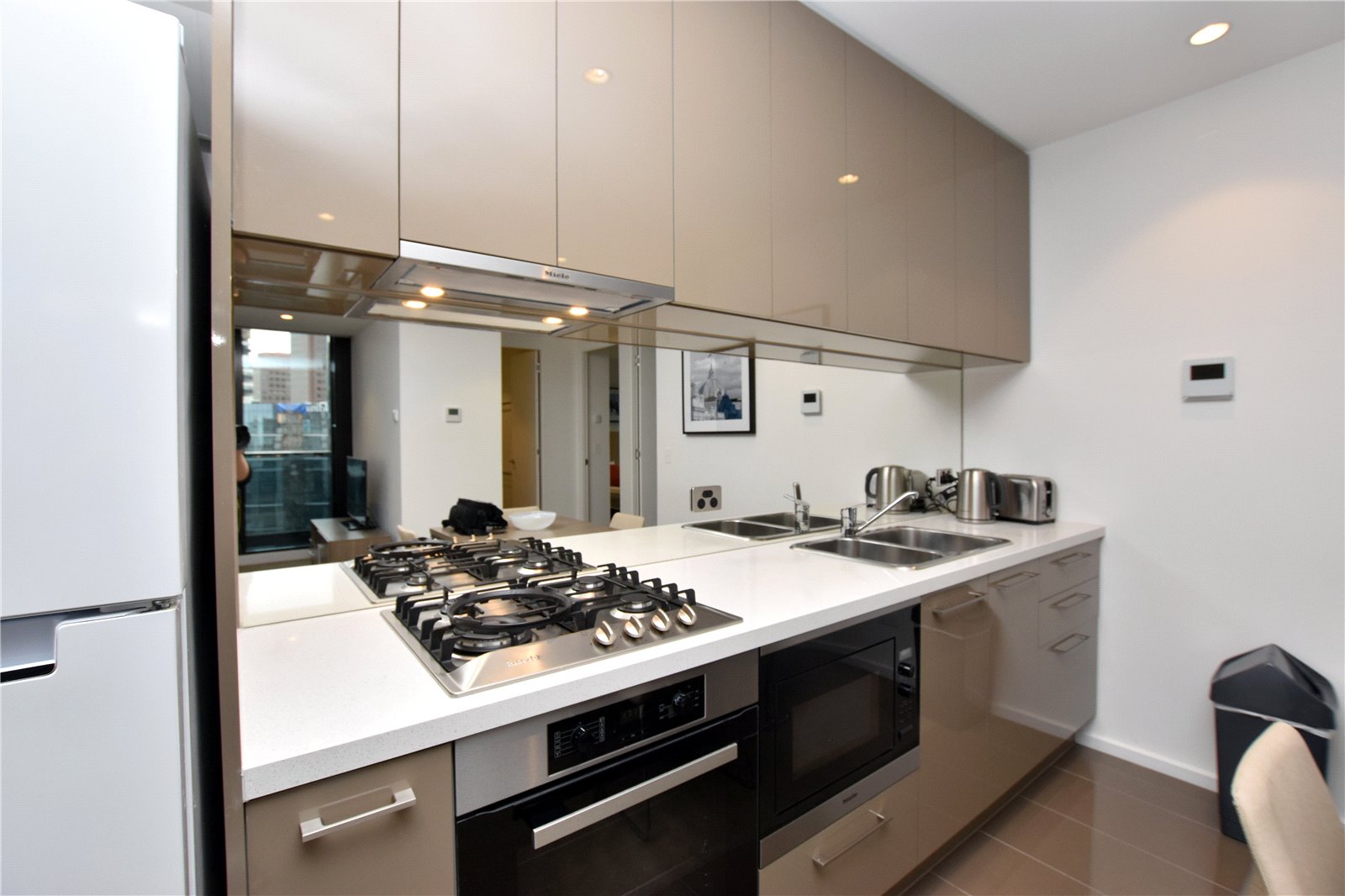 Apartment features: - Generous sized open plan living and dining area with reverse cycle heating & cooling and floor to ceiling windows - Study area with integrated desk and shelves perfect for a home office - Modern kitchen with Miele appliances including gas cooktop, microwave and Fisher & Paykel dishwasher - Sit back and enjoy the views from your private balcony - Bright bedrooms with built in robes - Modern bathroom and euro laundry with washer and dryer included
