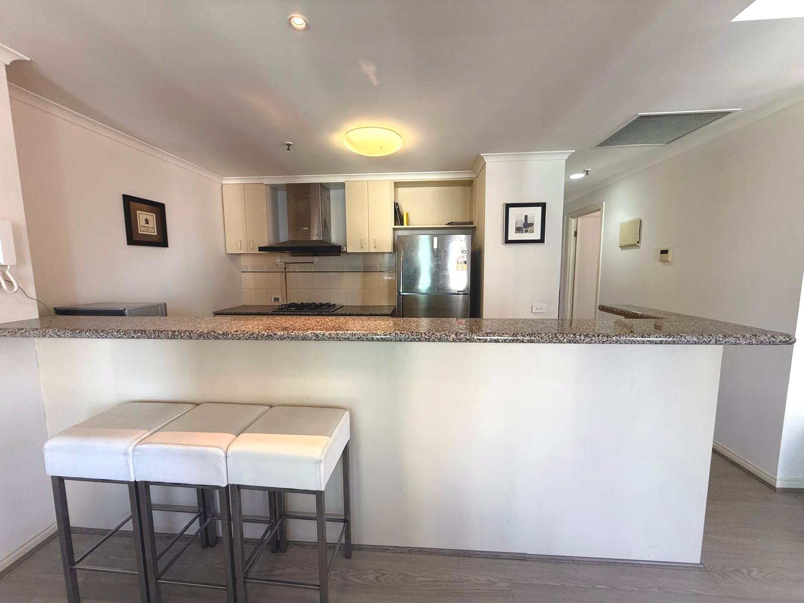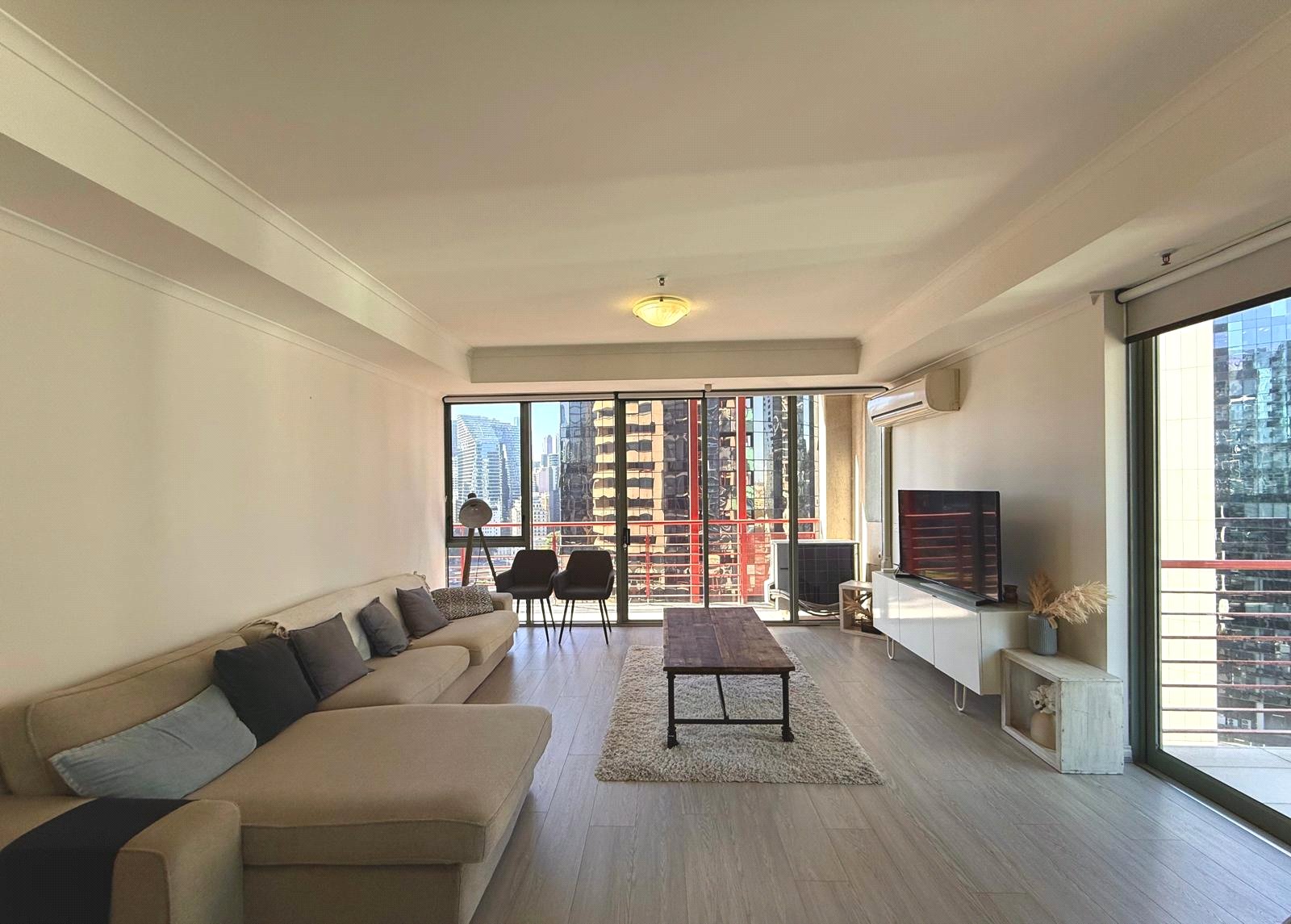 Situated on the 22nd floor of the sought-after Southbank Towers, the apartment features sleek floorboards flowing through an expansive open-plan living and dining zone. The stylish kitchen is appointed with granite benchtops, a breakfast bar, fridge, and quality stainless-steel appliances.