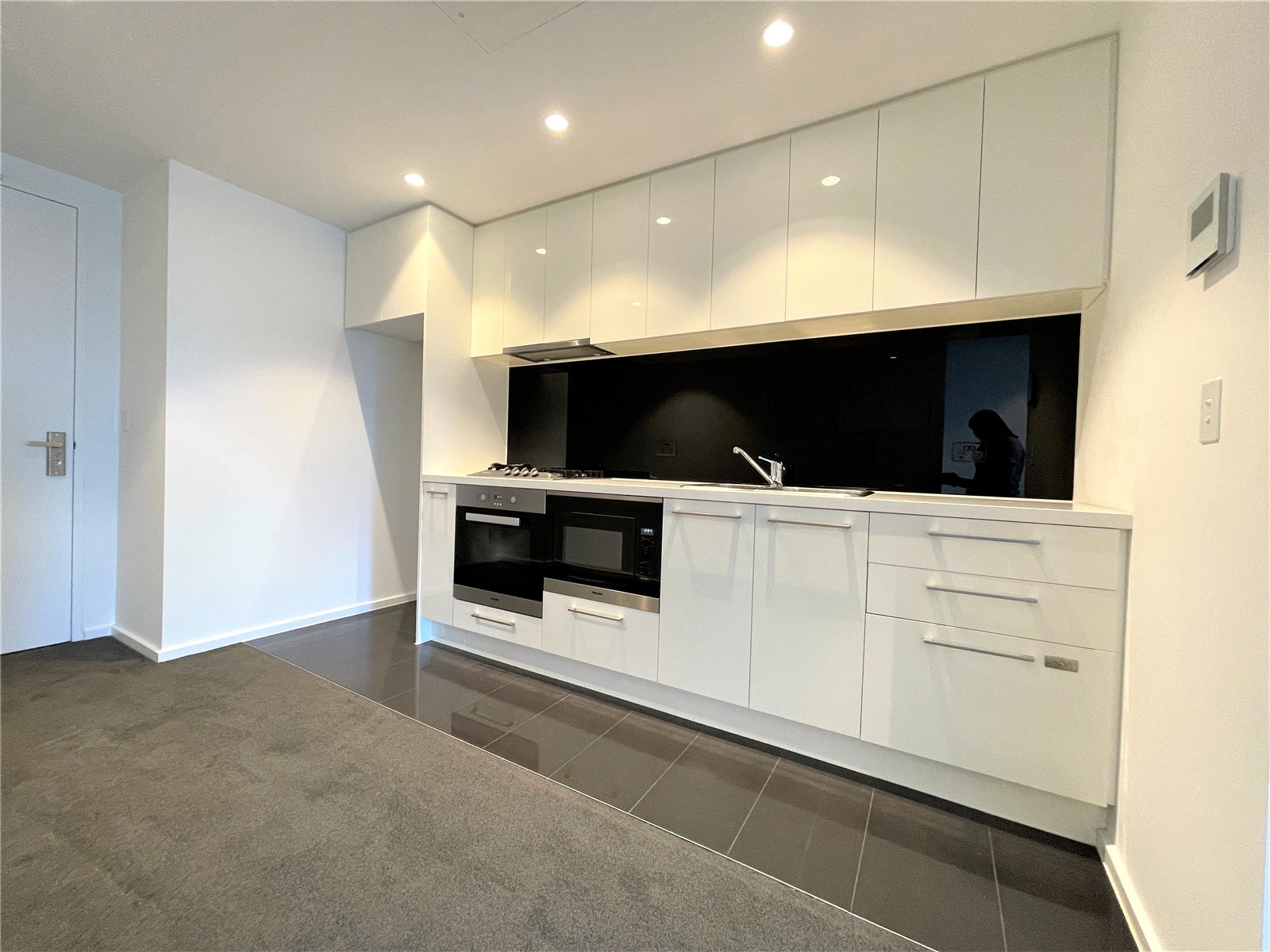 The modern and stylish kitchen is complete with glass splashbacks, cooktops, stone bench-tops and dishwasher, including washing machine and dryer combination system.
