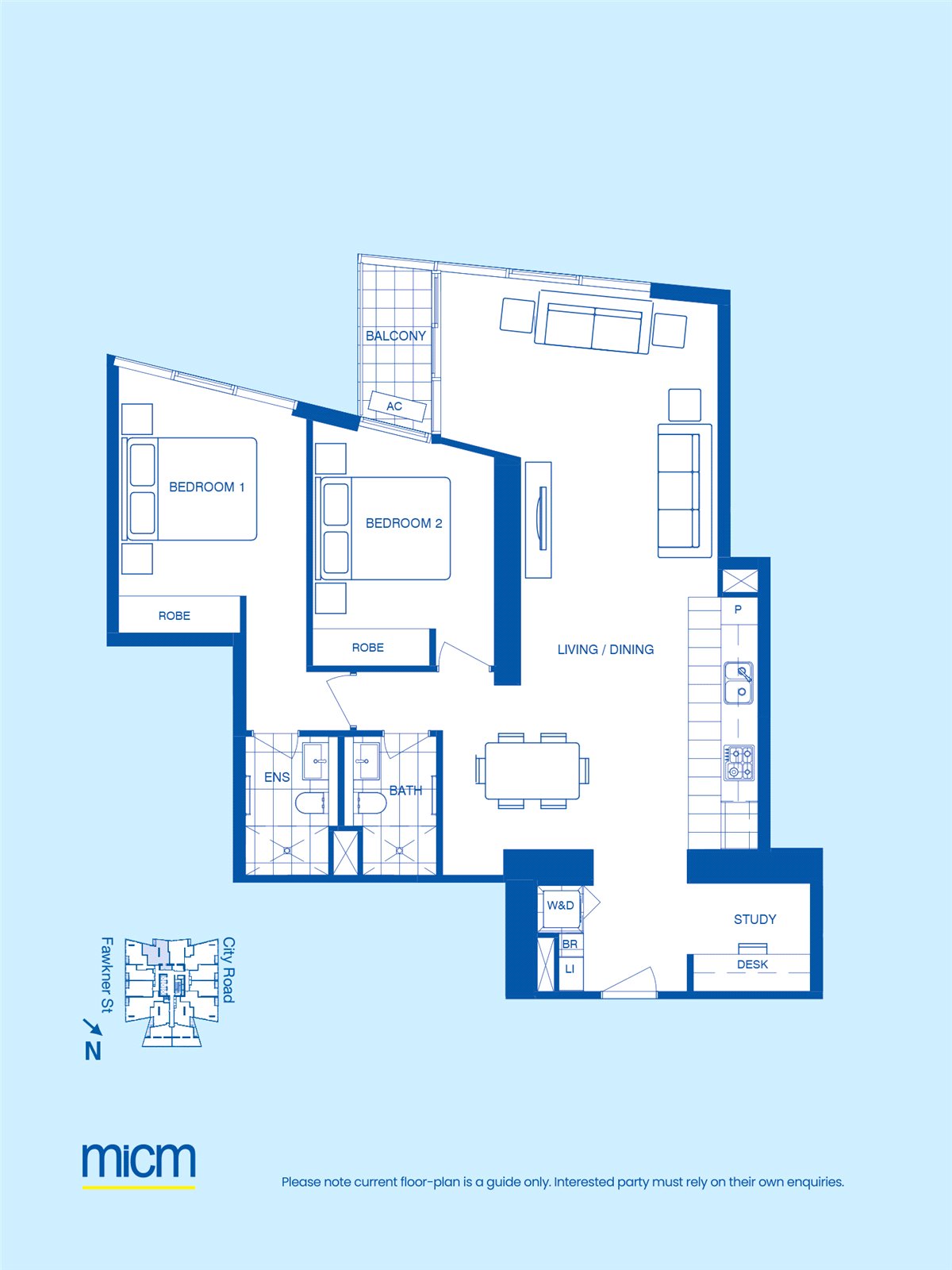 Perfect for residents that like having plenty of space, this roomy design offers a spacious open living area, gourmet kitchen with Miele appliances, two sparkling bathrooms and full-size separate study.