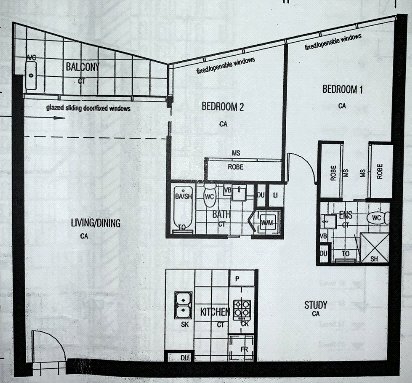 Apartment includes: - Open-plan living and dining area - Private balcony access from living room - Modern kitchen with gas cooktop including an integrated dishwasher - Master bedroom with floor to ceiling windows, ensuite and built in wardrobe - Second bedroom with floor to ceiling windows built-in mirrored wardrobe - A large separate study area - Modern bathroom - Concealed heating and cooling in living area - 1 secured car space