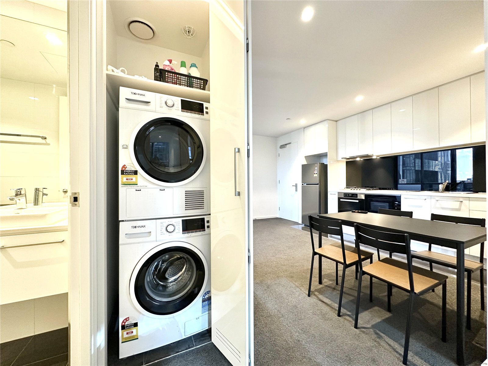 Apartment features: - Generous sized open plan living and dining area with reverse cycle heating & cooling and floor to ceiling windows - Gourmet kitchen with stone bench-tops & stainless steel Miele cooktop, oven, range hood and microwave - Sit back and enjoy the views from your private balcony - Bedroom with built-in-robe - Motorised blinds on external windows with blockouts to bedroom - Modern bathroom and euro laundry with washer and dryer included