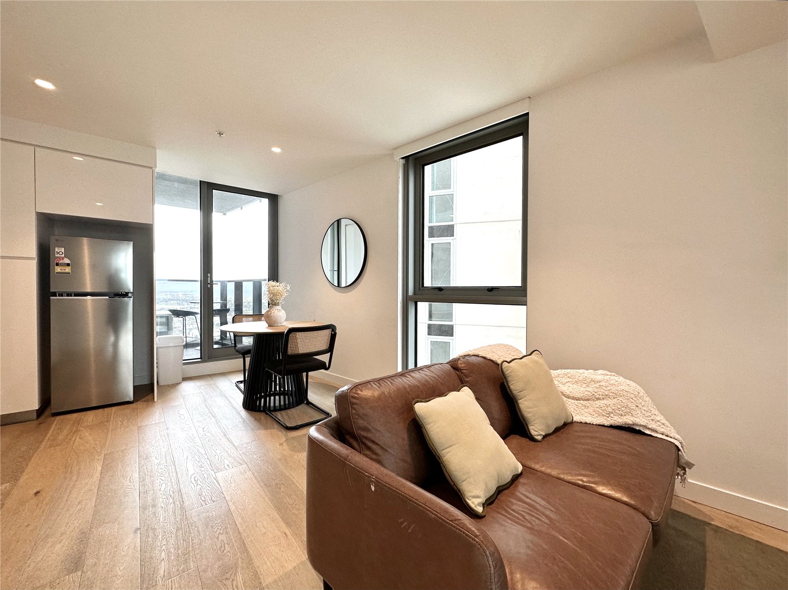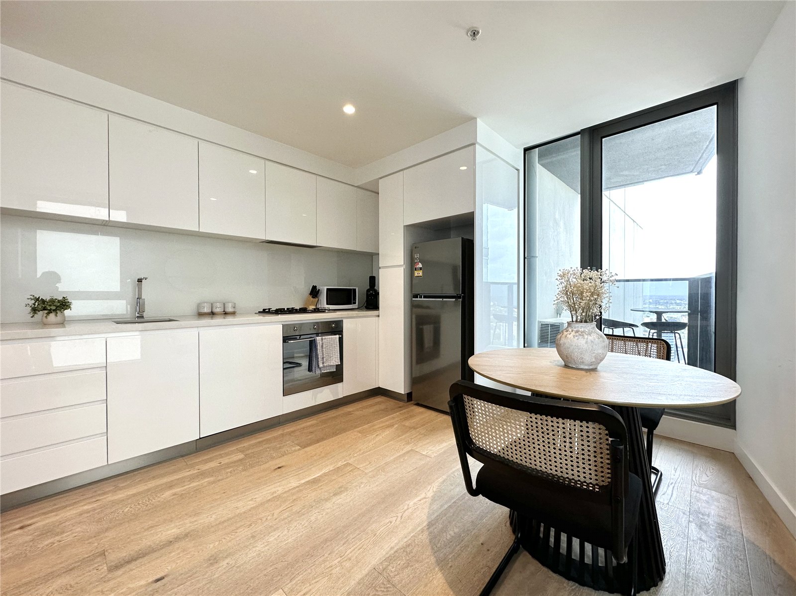 The apartment includes open plan living/ dining area with timber parquetry flooring and floor to ceiling windows fitted with roller blinds, opening out to your very own private balcony to take in the incredible bay views. One spacious bedroom with natural light and built in wardrobes. The well thought out kitchen includes stunning marble bench tops, dishwasher, gas stove, oven and fridge with plenty of cupboard space with sleek high gloss finish. Spacious bathroom with marble benches, functional storage and shower with large showerhead. Concealed European laundry with washing machine.