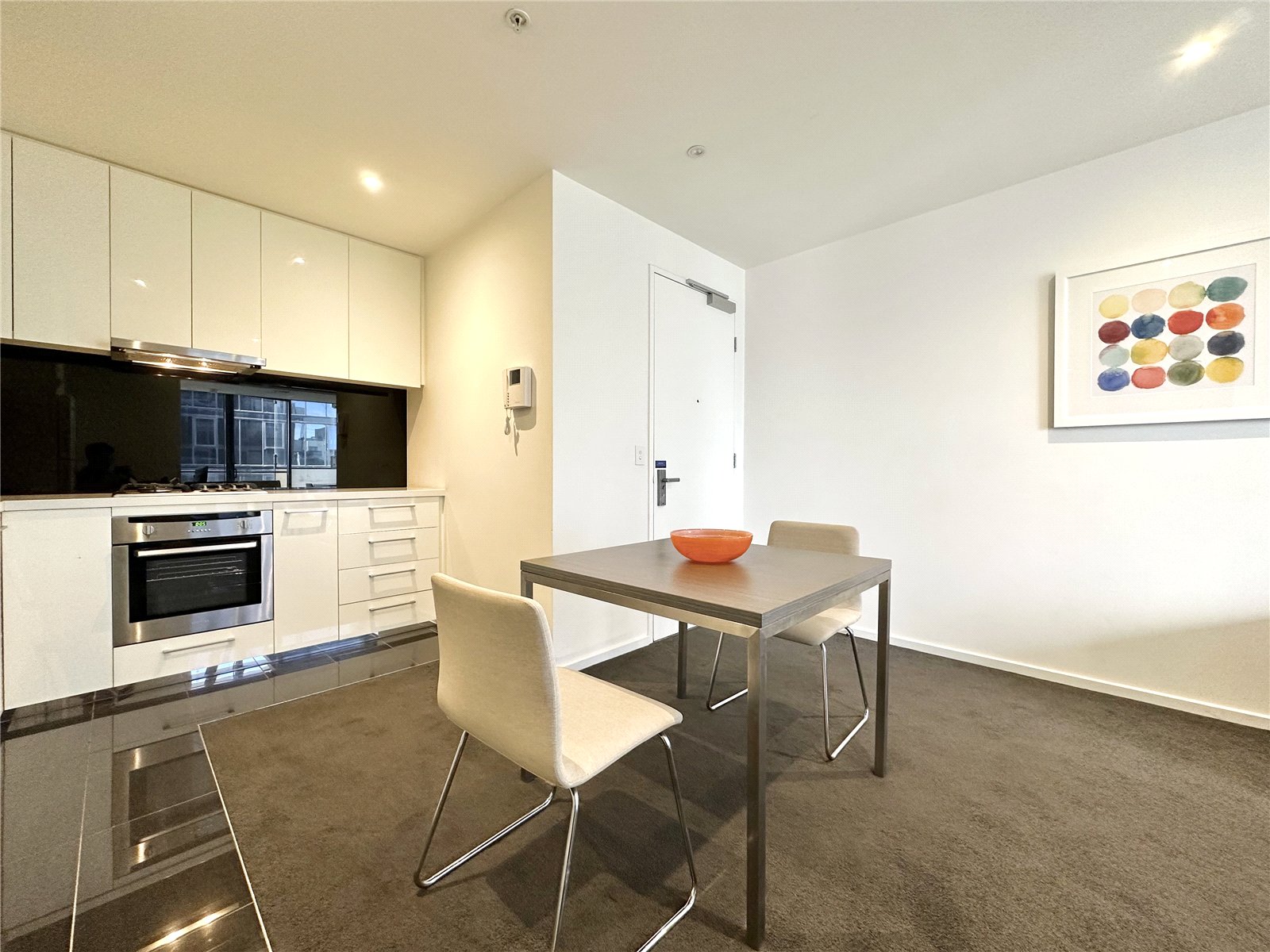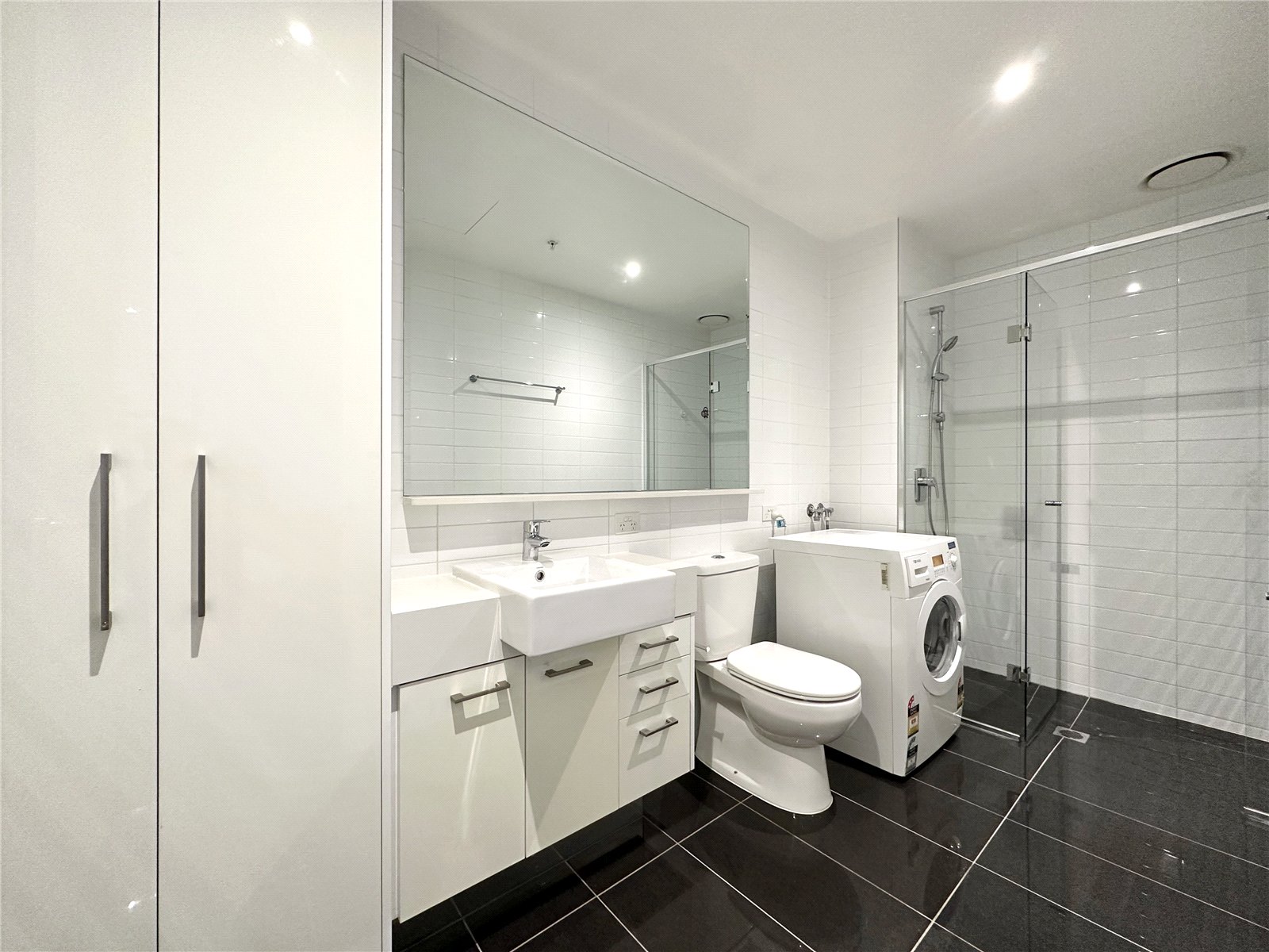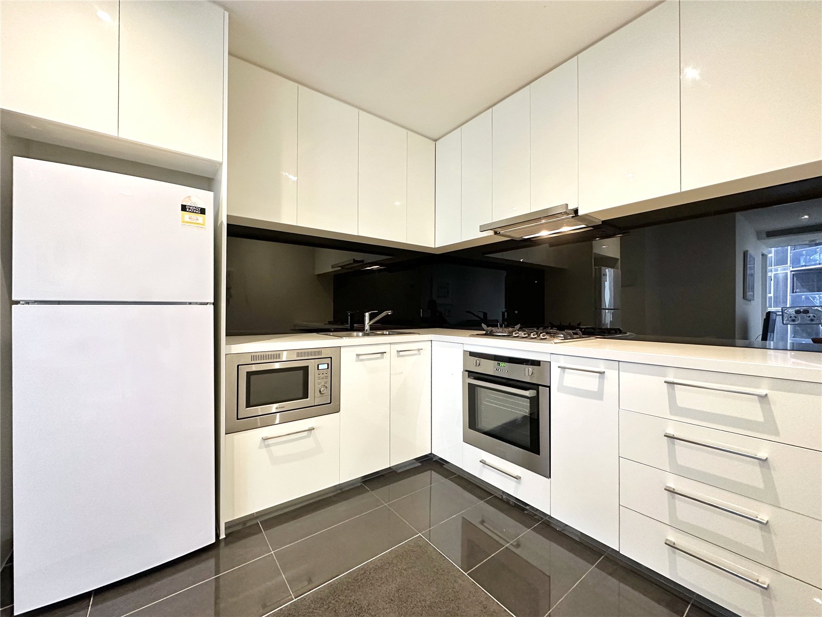 Apartment features: - Reverse cycle air conditioning and heating throughout apartment. - Large private balcony. - Modern kitchen featuring dishwasher, gas cooktop, sleek stainless steel rangehood and stone bench tops. - Large bedroom features mirror built in robes and floor to ceiling windows. - Sparkling bathroom boasts large shower, washer dryer and plenty of functional storage space.