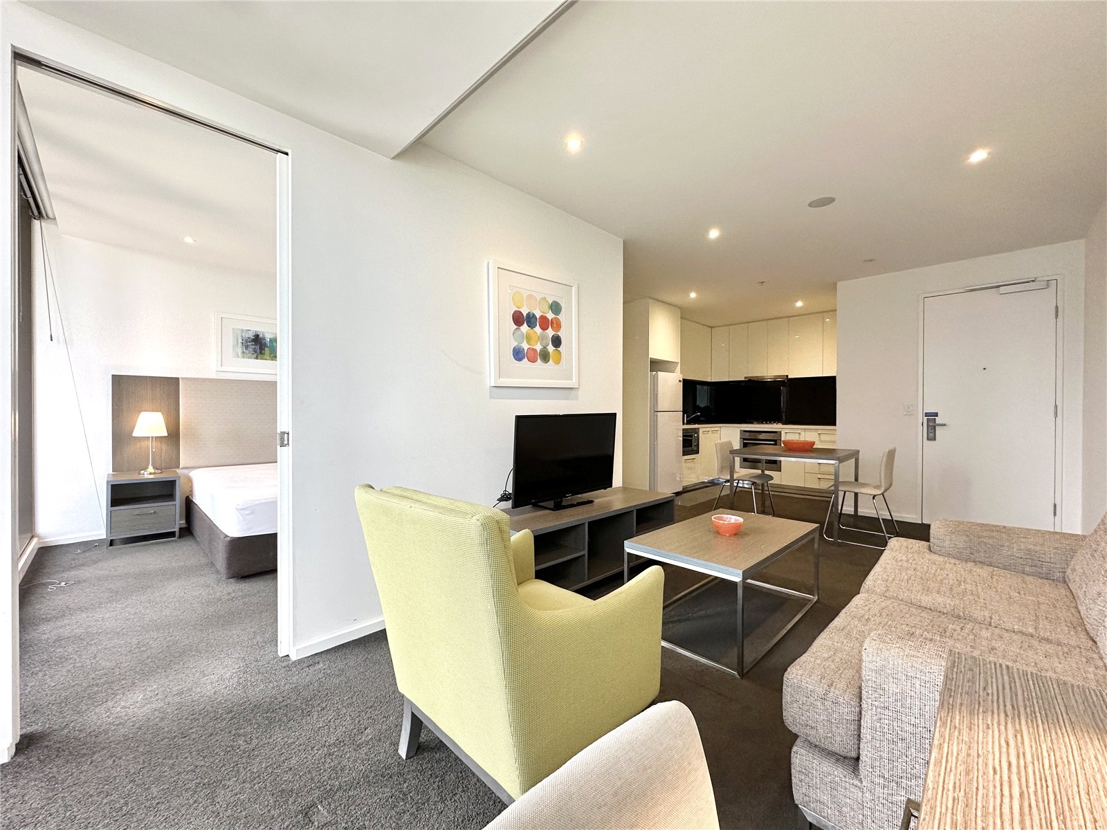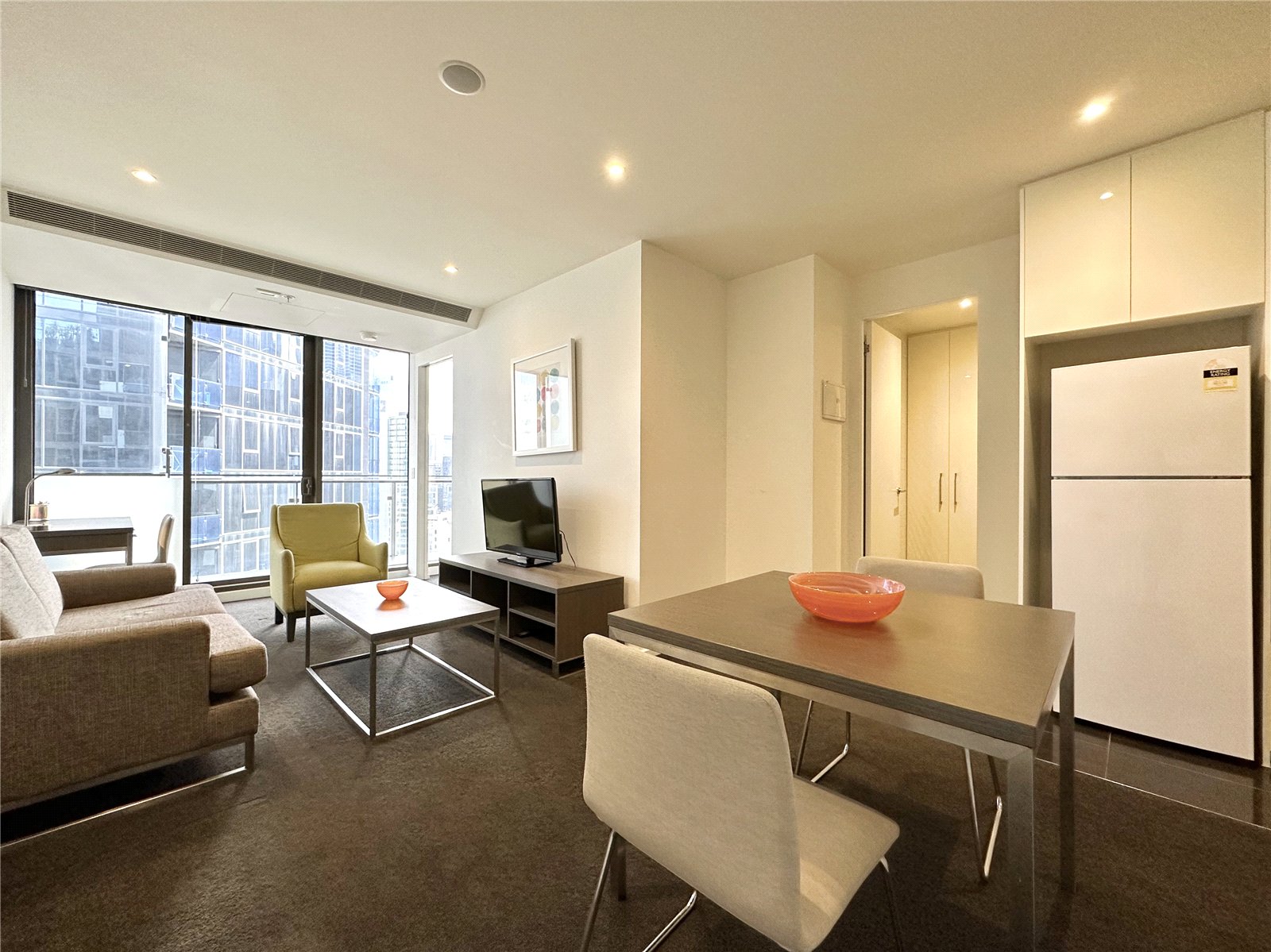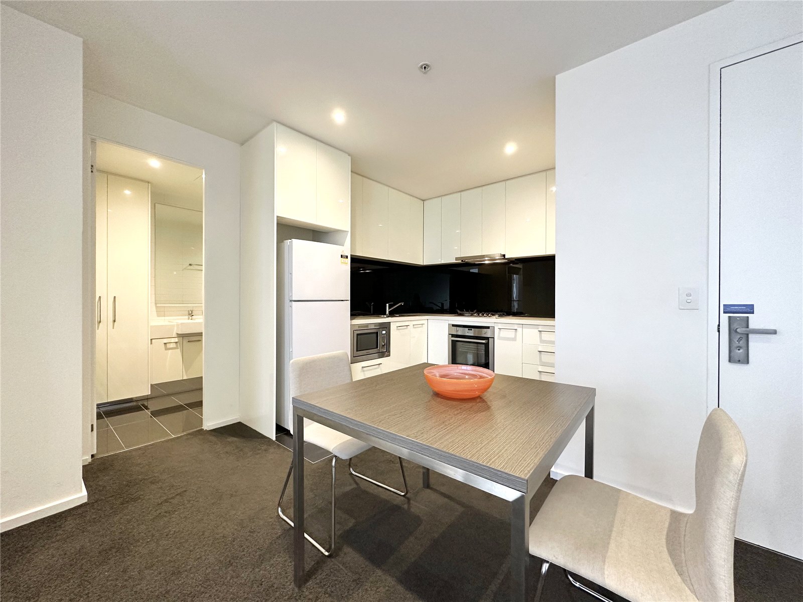 Apartment features: - Reverse cycle air conditioning and heating throughout apartment. - Large private balcony. - Modern kitchen featuring dishwasher, gas cooktop, sleek stainless steel rangehood and stone bench tops. - Large bedroom features mirror built in robes and floor to ceiling windows. - Sparkling bathroom boasts large shower, washer dryer and plenty of functional storage space.