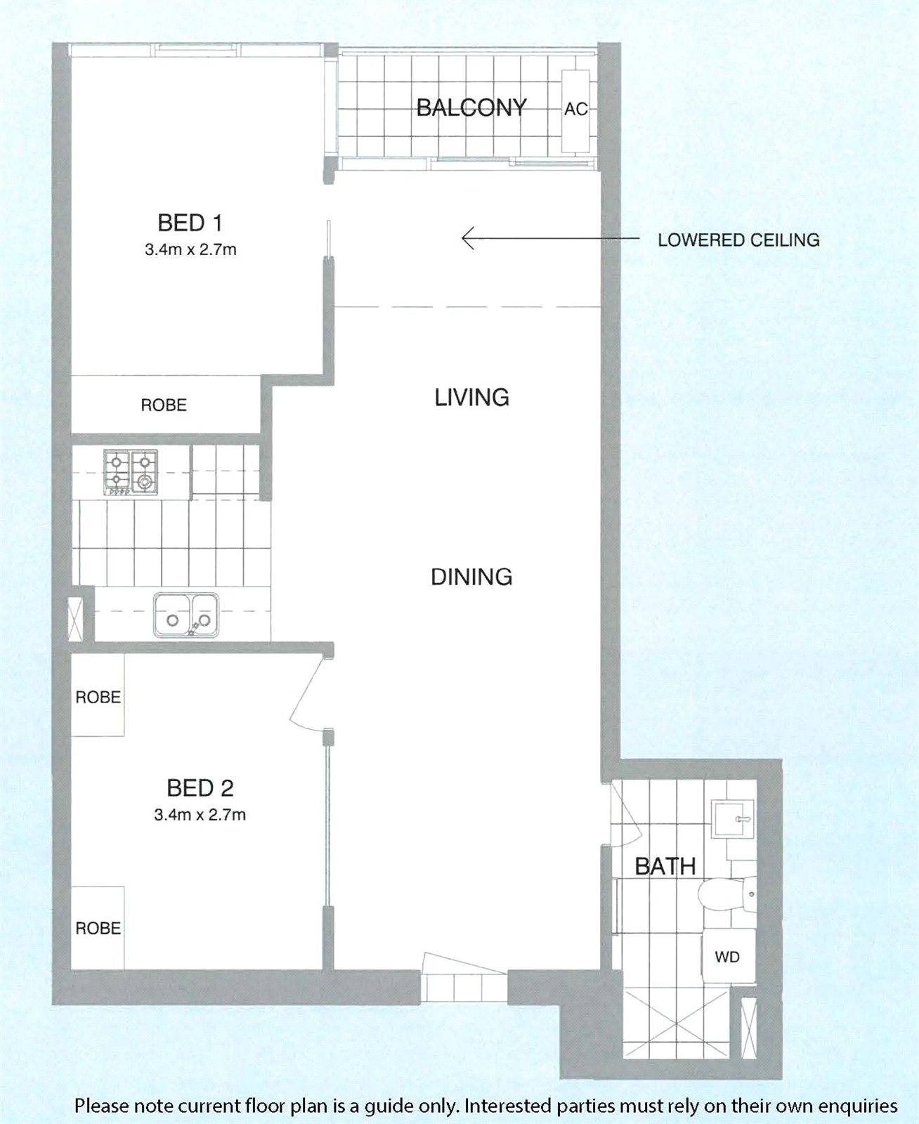 Apartment features: - Open plan living area from front door to balcony - Reverse cycle heating and cooling to the living area - Kitchen includes gas cooktop, microwave and dishwasher - Main bathroom with laundry facilities including combination washer/dryer - One carspace