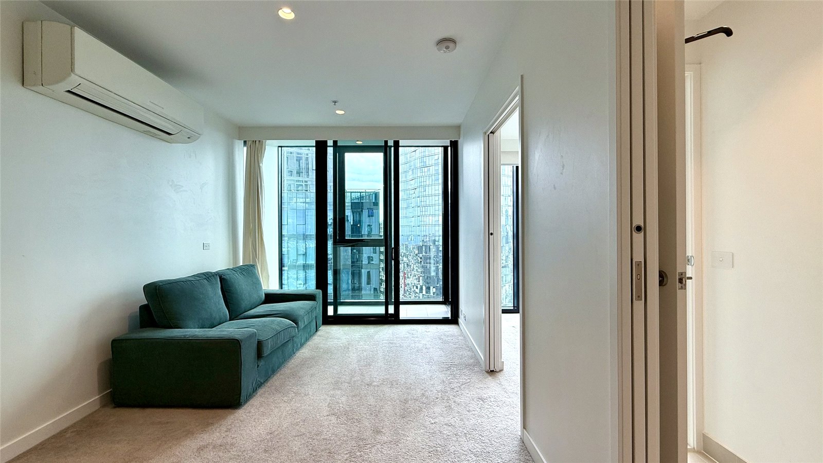 Apartment includes: - Open plan living and dining area with reverse cycle cooling and heating - Living area has access to private balcony, looking towards Docklands and the city! - Master bedroom with floor to ceiling glass windows and built-in mirrored robes - Second bedroom has built-in mirrored robes - Shared bathroom with laundry. - Functional kitchen with stainless steel Miele gas cooktop and oven, full size dishwasher. - Roller blinds throughout - 1 secured carpark