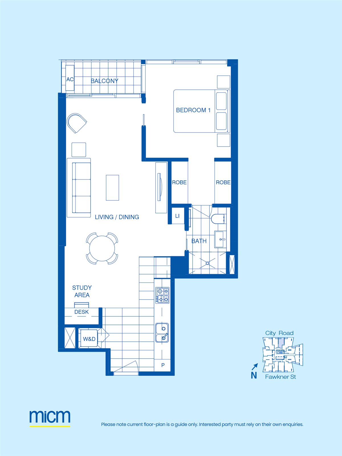 Featuring a full gourmet kitchen with Miele appliances, spacious bedroom with built-in wardrobe, open living with study area and private balcony; this chic one bedroom is perfectly located for easy city living.
