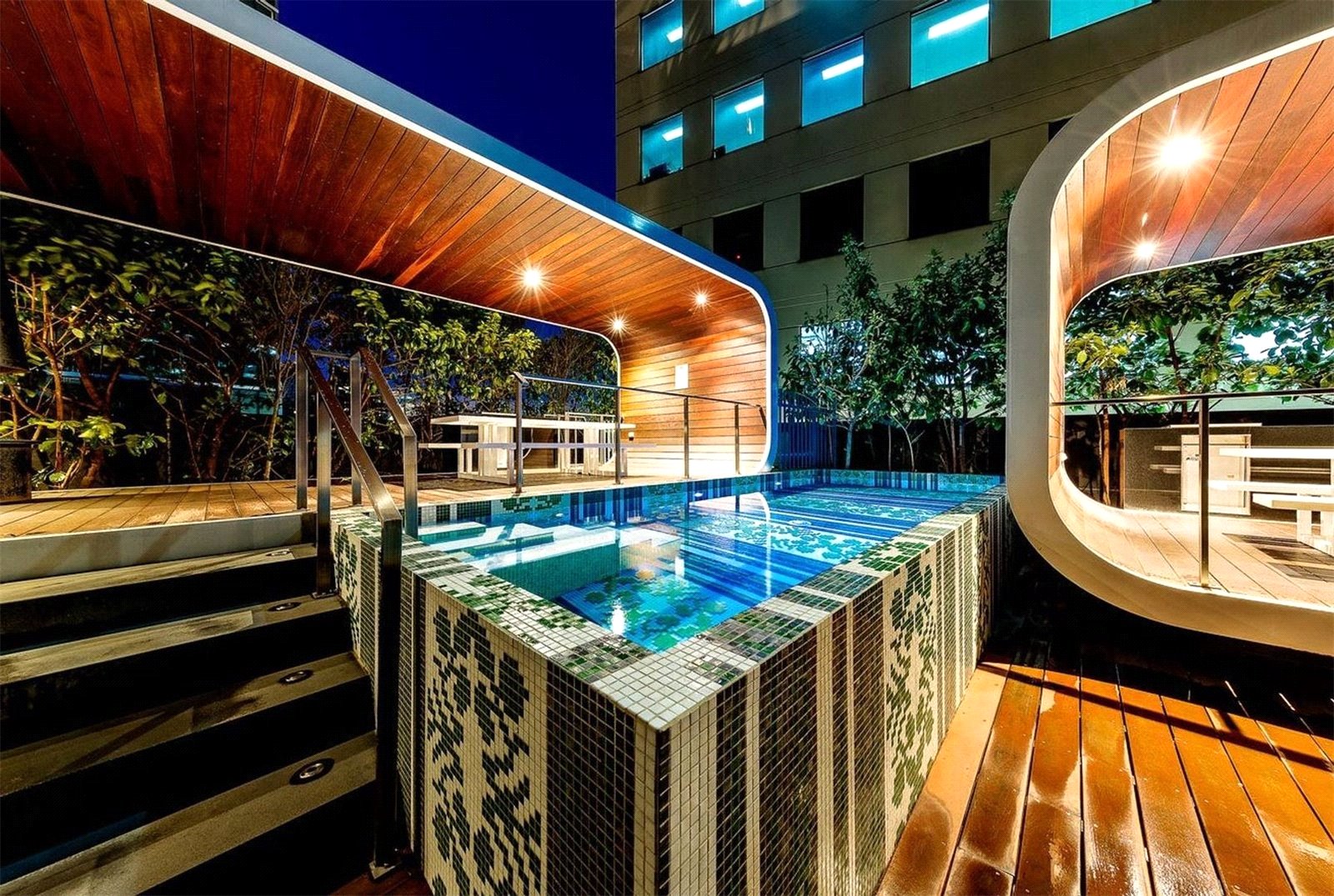 This apartment offers the use of the building amenities which include a gym, a refreshing splash pool, rejuvenating spa tubs, and a barbecue and outdoor dining area perfect for hosting guests.