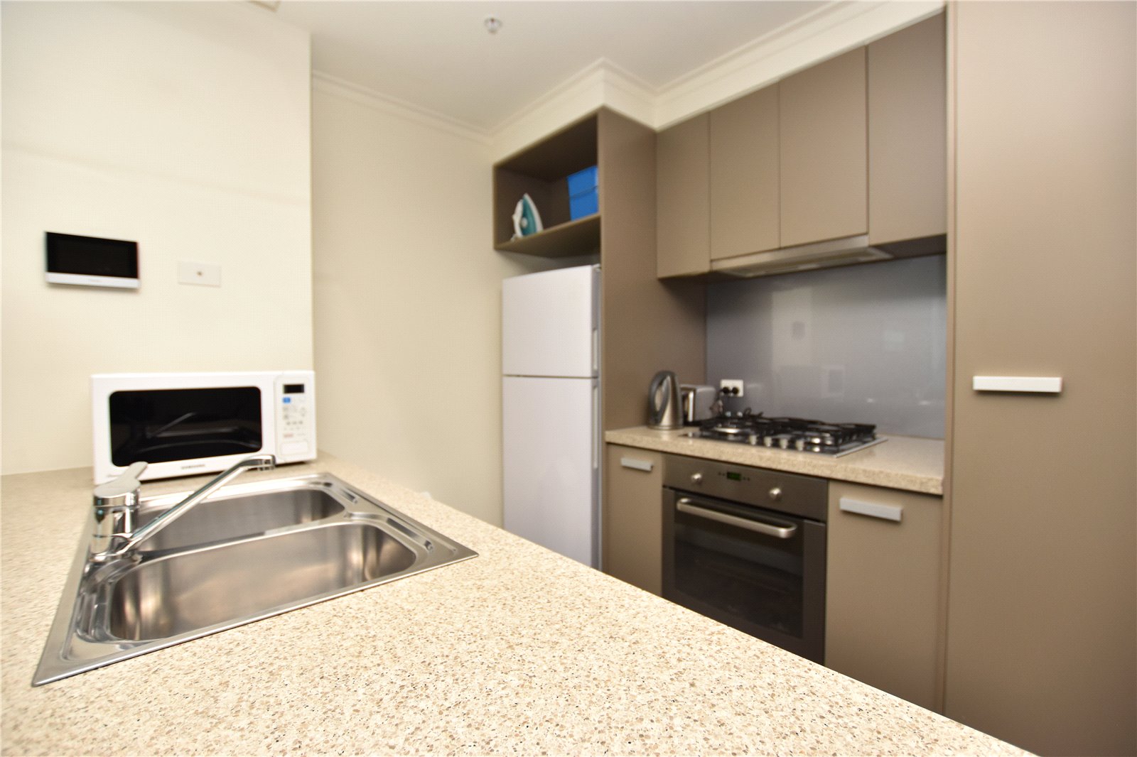 This apartment comprises spacious open plan living and dining area with plenty of natural light. Enjoy your own private balcony which overlooks the city and take in the beautiful views of the bay. This apartment includes air-conditioning and heating, modern and stylish kitchen with stainless steel appliances, stone bench tops, gas stove top, lots of storage space.