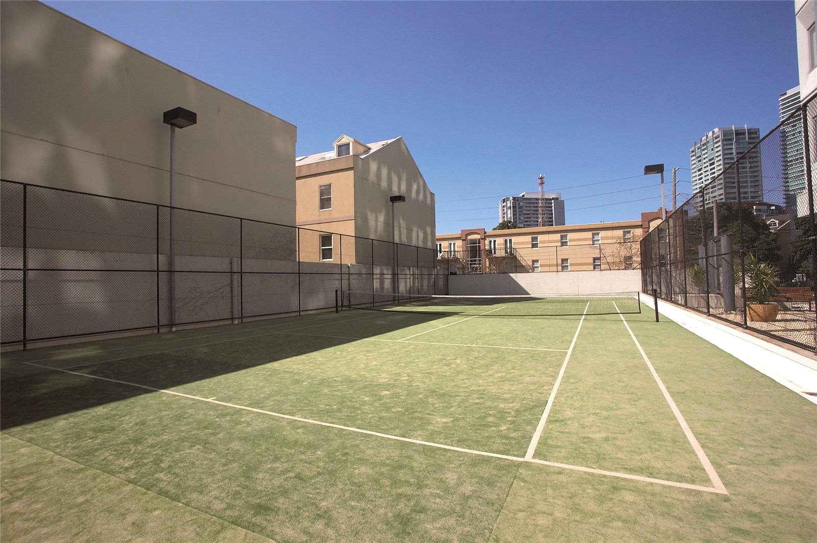 Features: Secure entrance, after hours security, site manager, air conditioning, secure basement car space, pool, gym, tennis court, and cinema room.