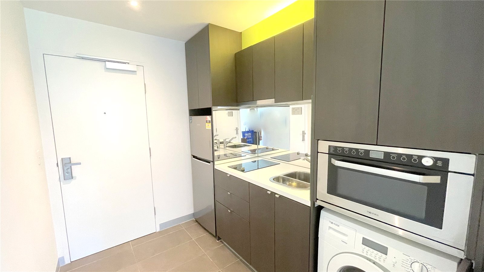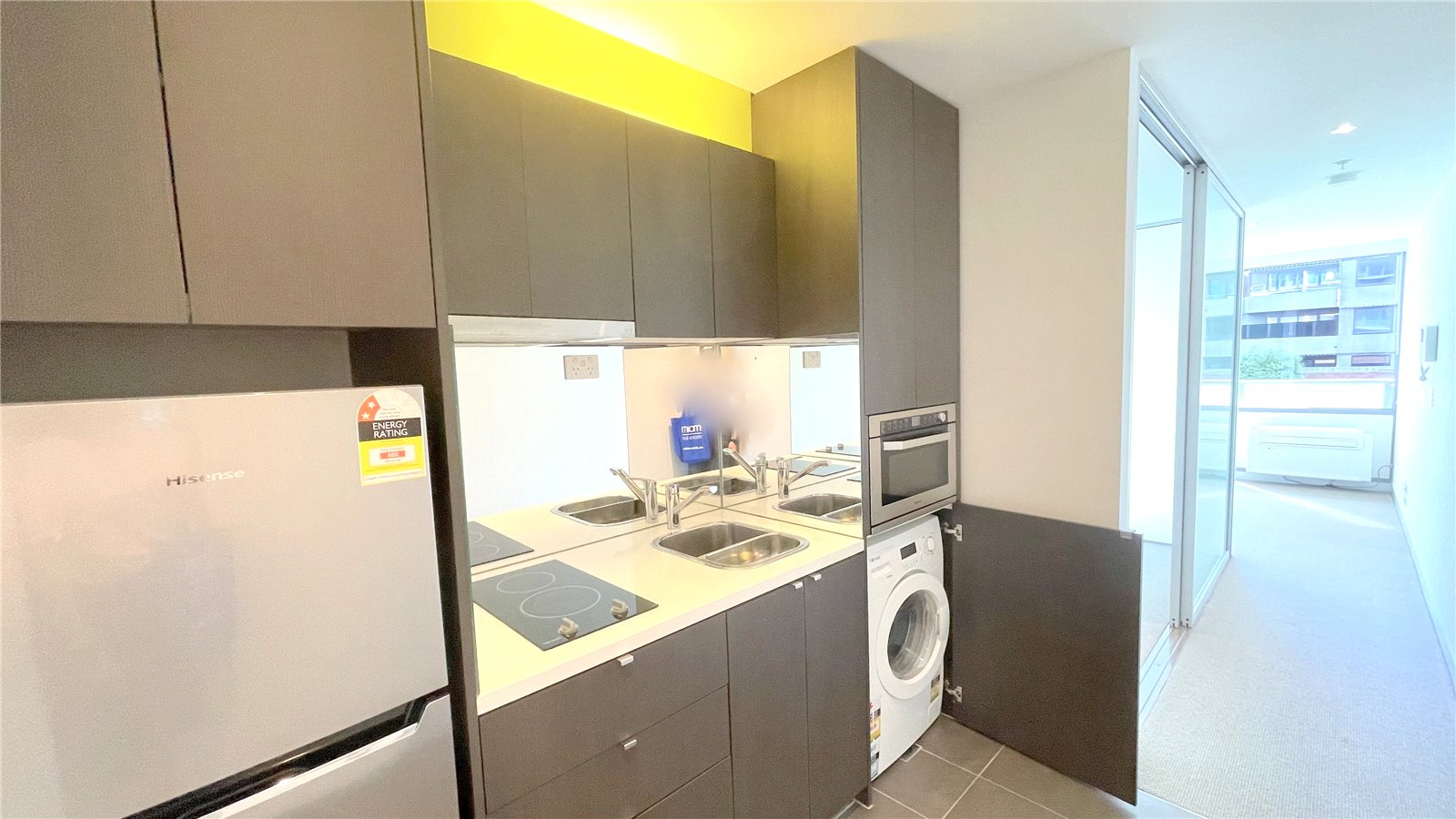 Accommodation: Opening to a contemporary kitchen featuring dishwasher drawer, fridge/freezer, stainless steel appliances and plenty of storage space. A wide carpeted living area comes complete with reverse-cycle heating/cooling. Good sized bedroom with built-in robes. Concealed laundry facility with washer/dryer. Stylish bathroom is fitted with floor-to-ceiling tiles and mirror vanity.